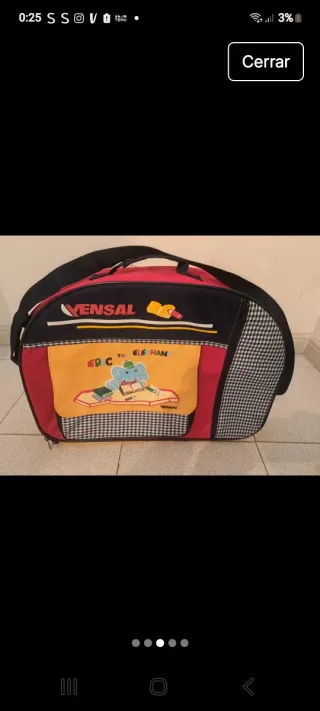 Maleta infantil con un divertido diseño de elefante. - Compartimento principal espacioso. - Asas cómodas para llevar. - Cierre de cremallera. - Diseño colorido y llamativo.
