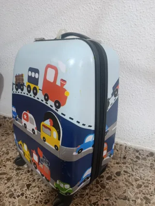 Maleta infantil con diseño de Cars de Disney. Sin apenas uso. La cremallera funciona correctamente, también el extensible. Tiene una pata rota por lo que no se puede mantener de pie sola pero las ruedas funcionan perfectamente. Nueva por dentro. - Personaje: Rayo McQueen. - Estampado temático de Cars. - Color principal: rojo.