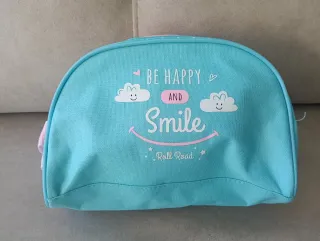 Práctica bolsa de aseo con un diseño alegre y divertido. - Estampado Be Happy and Smile. - Incluye nubes sonrientes y estrellas. - Cierre de cremallera.