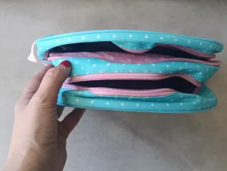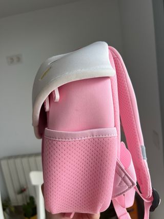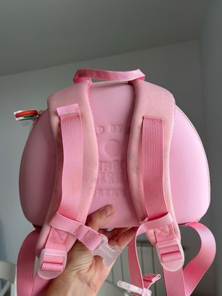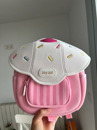Adorable mochila con diseño de cupcake para los más pequeños. La mochila es nueva, pero tiene un pequeño defecto de fábrica: una de las correas no queda completamente recta y está un poco torcida hacia un lado. Esto se puede ver en las fotos, por favor revísalas. La mochila es totalmente nueva y nunca se ha usado, pero no tiene caja original. Si necesitas ver algún detalle con más claridad, escríbeme y te envío más fotos. - Decorada con detalles de chispas de colores. - Cierre de cremallera frontal. - Bolsillos laterales de malla.