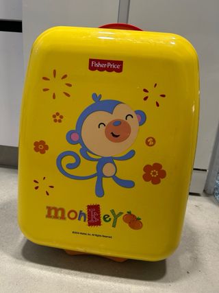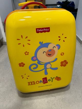 Maleta infantil con un divertido diseño de mono. - Rígida alto 40cmx32cmx18cm - Asa extensible para facilitar el transporte. - Ruedas para moverla fácilmente. - Cierre de cremallera. - Decoración con motivos alegres y coloridos. - Tiene alguna rozadura del uso (adjunto foto)