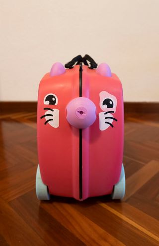 Maleta infantil Trunki con diseño de gatito. Rosa Tiene algunas marcas de uso, pero está en muy buen estado.