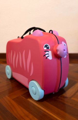 Maleta infantil con un divertido diseño de tigre, perfecta para los más pequeños. No ha viajado, sólo utilizada para jugar en casa. - Ruedas para facilitar el transporte. - Cierre de seguridad.