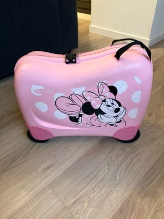 Maleta de cabina con diseño de Minnie Mouse. - Color rosa vibrante. - Divertidos estampados de Minnie y corazones. - Ruedas para facilitar el transporte.