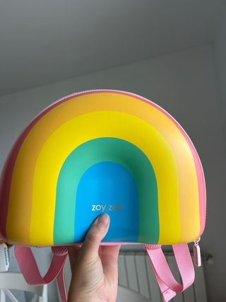 Mochila infantil con un divertido diseño de donut y arcoíris. Mochila infantil original Zoy Zoii con diseño redondo en forma de donut y arcoíris 🌈 Ideal para niños y niñas de 3 a 7 años. ✨ Características: • Diseño rígido y resistente en forma circular • Ligera y cómoda para niños pequeños • Perfecta para guardería, colegio infantil, paseos o viajes • Tirantes cómodos y cremallera de buena calidad • Diseño colorido y muy bonito que encanta a los niños • Marca: Zoy Zoii 🎒 Perfecta para llevar juguetes, merienda o cosas del cole. - Forma redonda. - Cierre superior. - Tirantes ajustables.