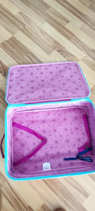 Maleta de viaje para niñas con un diseño divertido y colorido. Perfecta para llevar sus pertenencias. - Interior forrado con estampado de estrellas. - Correas elásticas para sujetar la ropa. - Asa lateral para facilitar el transporte.