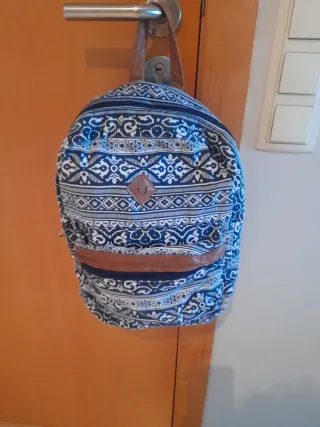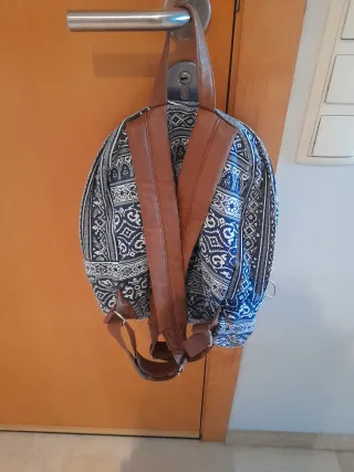 Mochila juvenil con un diseño llamativo y práctico. - Compartimento principal espacioso. - Bolsillo frontal con cremallera y estampado étnico. - Detalles en cuero sintético. - Correas ajustables para mayor comodidad.