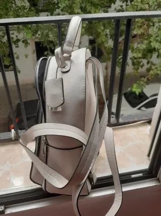 Magnífica mochila juvenil de cuero, ideal para el día a día. Su diseño moderno y juvenil la hace perfecta para cualquier ocasión. - Material: Cuero - Color: Beige - Sin estrenar