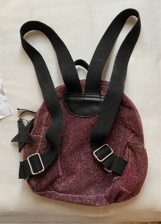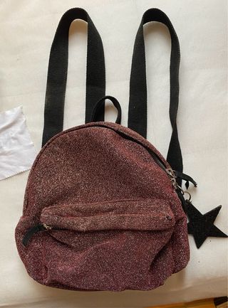 Mochila juvenil con un acabado brillante y detalles metálicos. - Diseño moderno y juvenil. - Cierre de cremallera. - Incluye un adorno de estrella. - Dos tiras ajustables para llevar en la espalda. Medias : 29 cm de alto