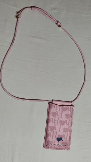 Bolso de La Vecina Rubia con un diseño moderno y juvenil. Perfecto para llevar el móvil y tarjetas. Color rosa estampado