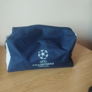 neceser juvenil rectangular pone ADIDAS y UEFA CHAMPIONS.es de color azul marino y gris. .medidas 22x13x12cm