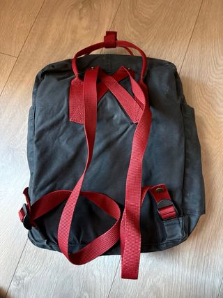 Mochila clásica Fjallraven Kanken en color negro. Un diseño icónico y funcional. Solo la usé un día, está impecable. - Compartimento principal espacioso. - Bolsillo frontal con cremallera. - Asas superiores y correas ajustables.