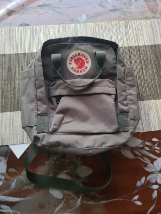 Mochila Fjällräven Kånken en color gris verdoso. Un diseño clásico y funcional. - Logo de Fjällräven en la parte frontal. - Cierre de cremallera principal. - Asas superiores y correas ajustables. Usada . Con signos de desgaste pero aún puede dar más