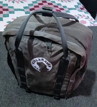 Mochila estilo Fjallraven, no es la original pero es idéntica. Color verde y granate Algo desteñida en los tirantes pero en buen estado Precio simbólico para que se le dé un segundo uso
