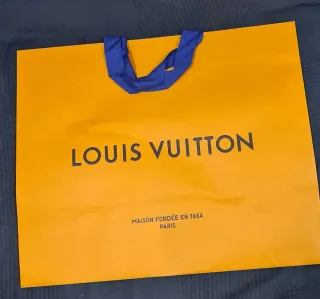 Bolsa tipo sobre 45x28 cm (una mínima rotura, ver foto) - lazo azul de 28 cm. Sobre 9x13 cm tarjetita LV 6x3 cm Todo 8 € Se puede enviar debidamente protegido #bolsadepapel #bolsadecarton #bolsapapelregalo #bolso #monedero #cartera #corbata #pañuelo #amigoinvisible #bolsapapel #lv #louisvuitton
