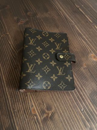 Agenda Louis Vuitton con el icónico estampado Monogram. - Diseño clásico en canvas. - Cierre de botón a presión.