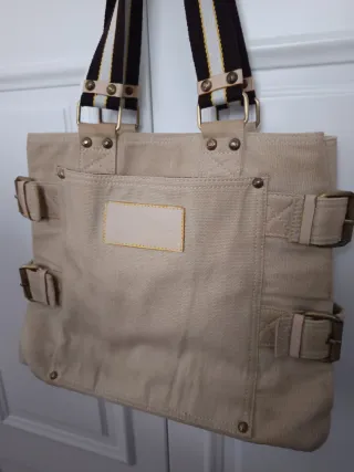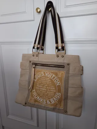Bolso Loneta de Louis Vuitton. Práctico y original. Dos asas para colgar del hombro. Color beige, y el cuadrado de la delantera color mostaza suave. Forrado totalmente con su tela de logotipo. Me lo regalaron hace mucho y tiene muy poco uso. Compartimento interior. Tanto por la delantera como por la trasera lleva compartimentos exteriores. Es un regalazo para estás Navidades. Muy buen estado. Medidas: Ancho 36 cm Altura 28cm
