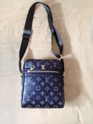 Precioso bolso de la marca Louis Vuitton (LV), sin usar. Es de color azul y beige, una combinación elegante y moderna. Le falta la cinta del hombro - Diseño unisex. - Asa de mano. - Material de lona resistente.