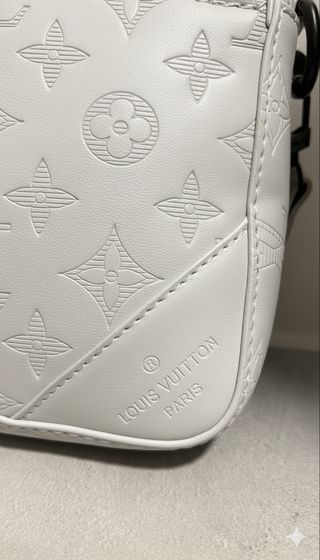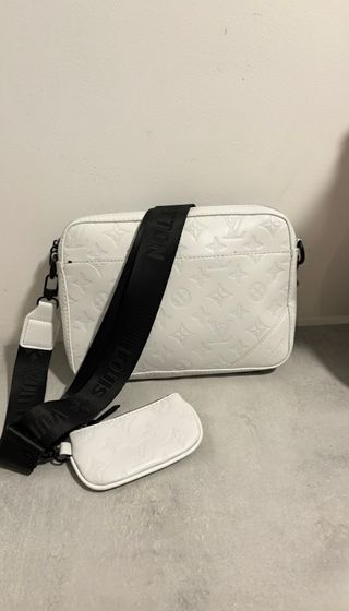 Bandolera de Louis Vuitton con un diseño moderno. - Combinación de blanco y gris. - Correa ajustable con el monograma de la marca. -Buen estado