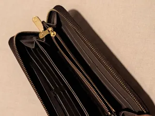 Elegante cartera con el icónico estampado Monogram. - Diseño en tonos marrones. - Detalle de cremallera dorada.