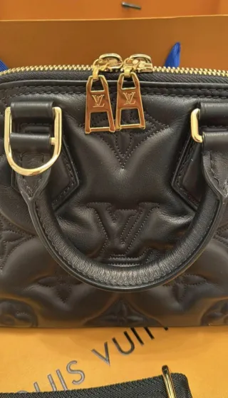 Elegante bolso de piel Louis Vuitton en color negro. Un accesorio sofisticado y versátil. - Diseño acolchado con el icónico monograma. - Cremallera superior dorada. - Incluye correa ajustable para llevar al hombro o cruzado.