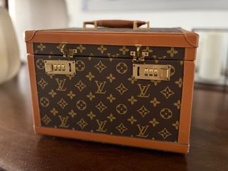 Elegante neceser o joyero rígido de Louis Vuitton con el icónico estampado Monogram. - Diseño clásico y atemporal. - Acabados en piel color coñac. - Cierres de combinación dorados que funcionan perfectamente. - Espejo interior. Se trata de un modelo vintage adquirido en los años 80 y bien conservado. Diseñado para transportar y organizar artículos de tocador, cosméticos y joyas. Cualquier otra imagen puede solicitarse sin problema. Preferible venta en persona.