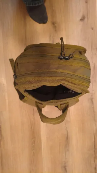 Mochila de estilo militar en color caqui, ideal para actividades al aire libre. Tamaño 25l. Muy manejable pero si necesitas cargarla, se expande mucho como se ve en las imagenes. Relleno solo para las fotos, se entrega vacía y plegada. - Diseño robusto y funcional. - Múltiples compartimentos y correas MOLLE para personalización. - Asa superior reforzada para un agarre cómodo.