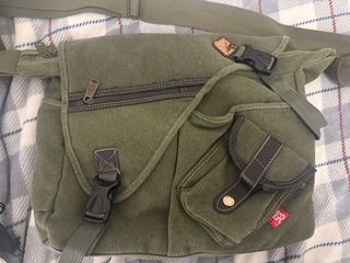 Bandolera de la marca Diesel en color verde militar. Diseño funcional y moderno. - Correa ajustable para mayor comodidad. - Múltiples compartimentos para organización. - Cierre de cremallera principal. - Detalle de bolsillo frontal con botón.