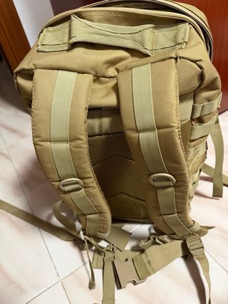 Mochila de estilo militar y táctico, ideal para actividades al aire libre o uso diario. - Diseño con múltiples compartimentos y bolsillos. - Sistema MOLLE para acoplar equipo adicional. - Cierres de cremallera resistentes. - Correa de hombro ajustable y acolchada. CAMPING, SENDERISMO, DEPORTES AVENTURA, VIAJES, CABINA