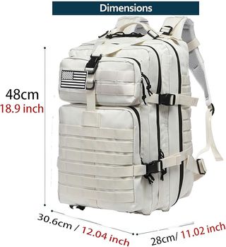 Mochila tactico militar 50l blanco roto incluye incluye 2 parches de tela bordado con velcro gran capacidad medidas 50x30x30 cm varios compartimento espalda acolchada impermeable ideal para gym, senderismo, caza, trekking, crossfit, viajar, estudio