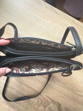Bolso de la marca Misako. Tiene varios compartimentos. - Diseño moderno y versátil. - Cierre con cremallera. - Correa ajustable para llevar al hombro o cruzado.