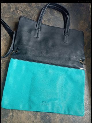 Funcional como bolso bandolera o de mano y también como bolsa En color negro y turquesa 34 cm ancho x 23 cm alto o como bolsa 40 cm alto Se conserva su bolsa original Prácticamente nuevo aunque se observa al hacer fotos un pequeño roce en una esquina, ver última foto
