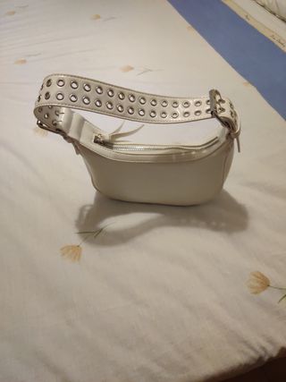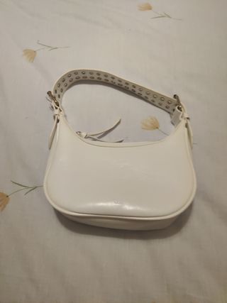 Precioso bolso blanco de la marca Misako. Es un bolso nuevo, aunque sin etiqueta. - Asa de hombro con remaches metálicos. - Cierre de cremallera. - Diseño elegante y atemporal.