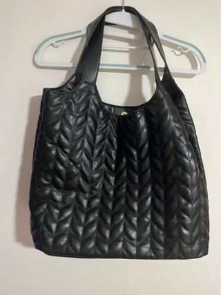 Bolso negro con un diseño acolchado. - Acolchado con patrón de espiga. - Asas cómodas para llevar al hombro.