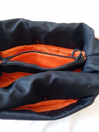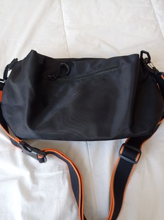 Bandolera deportiva de Misako de poliéster en color negro y forro naranja.Caben muchas cosas es muy espaciosa(mediana).Esta como nueva apenas se ha usado.