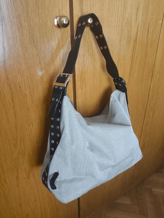 Bolso Misako, gris, con una correa de hombro y otra más larga para llevarlo cruzado. Gran capacidad. perfecto estado, usado dos veces, con bolsa para guardarlo.