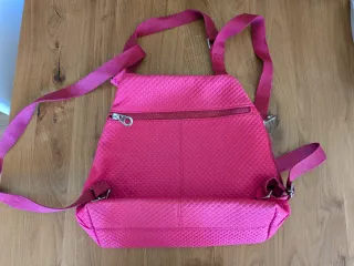 Mochila de la marca Misako en un llamativo color rosa fucsia. Su diseño acolchado le da un toque moderno y original. - Diseño acolchado con patrón de rombos. - Correa ajustable para llevar al hombro o cruzada. - Cremallera principal. - Bolsillo exterior con cremallera. - Pequeño bolsillo interior. - Logo de la marca en relieve.