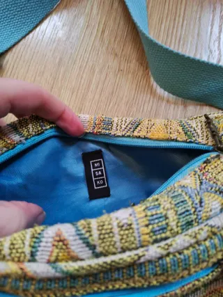 Bolso de la marca Misako en color azul marino con detalles interiores en amarillo lima. Su diseño combina elegancia y un toque de color. - Cierre principal con botón a presión y cremallera. - Bolsillo frontal con solapa. -Bolsillo interior con cremallera - Asa de mano y correa ajustable para llevar al hombro o cruzado. Nunca lo h estrenado. Tiene unas pequeñas marcas en la parte de atrás por el almacenaje