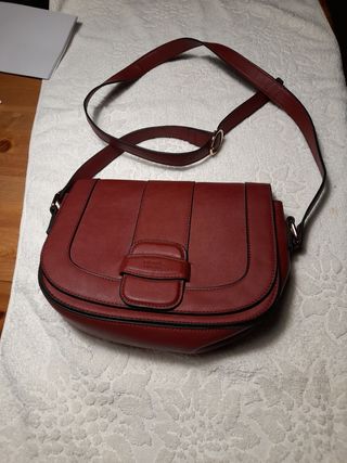 Puedo entregar en Sarrià, L'Illa Diagonal o en El Corte Inglés de Diagonal Bolso de mano con correa ajustable. - Color granate. - Cierre con solapa y broche. - Diseño elegante con costuras marcadas.