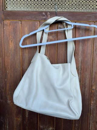 Bolso Misako en tono rosa palo, diseñado para proteger tu ordenador o tablet. Se puede llevar corto o largo. Asa extraíble. Costo 39eur. Tiene un borde ligeramente pelado ver foto. Apenas perceptible. El resto como nuevo. Echa un vistazo a mí perfil. Vaciamos la casa. - Material con textura. - Cierre superior. - Asas de mano. - Detalle de costuras.