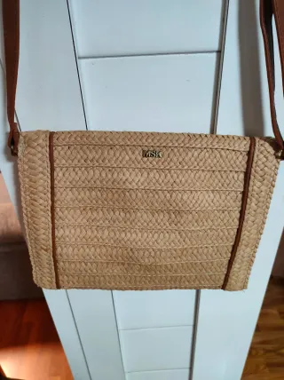 Preciosa bolsa de la marca Misako. Es espaciosa y cómoda de llevar. - Diseño elegante con estampado de hojas. - Asa de mano y asa para colgar al hombro. - Cremallera para cierre seguro. - Perfecta para el día a día. Tambien la puedes usar para la playa . En perfecto estado.