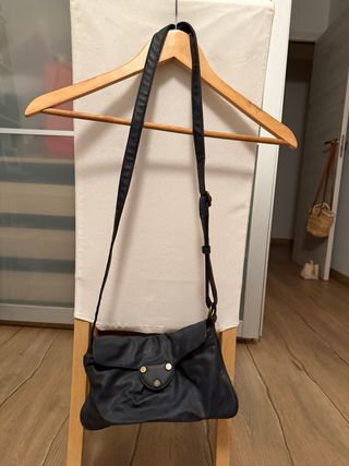 Bolso bandolera pequeña de cuero de la marca Misako. Está en muy buen estado. - Asa larga regulable. - Cierre de cremallera. - Un bolsillo interior.