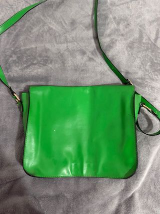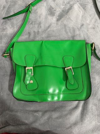 Bolso de mano o bandolera en color verde brillante. - Cierre con hebillas. - Correa ajustable.