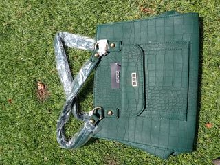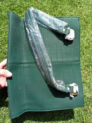 Precioso bolso de la marca Misakp. Es de color verde y tiene una textura que imita la piel de cocodrilo. - Asa de mano y asa larga para llevarlo al hombro o cruzado. - Bolsillo frontal con cierre. - Diseño elegante y sofisticado.
