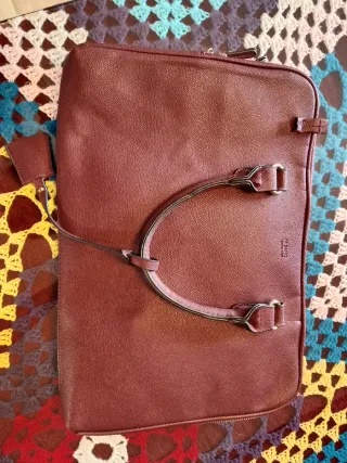 Vendo este precioso maletín para ordenador portátil de la marca Misako (MSK). Tiene un diseño exclusivo con un estampado de flores y pajaritos en tonos cálidos. Ideal para portátiles de hasta 15,6 pulgadas (espacioso también para documentos o tablet). Acabado en lona estampada de alta resistencia con detalles, ribetes y asas en polipiel color camel. Cuerpo acolchado para proteger tus dispositivos de golpes y arañazos. Logo de MSK en relieve metálico y anillas laterales por si quieres añadirle una correa larga de bandolera (no incluida). En muy buen estado general. Cremalleras funcionando suavemente y asas bien conservadas.