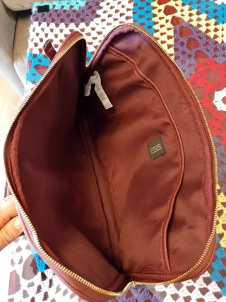 Elegante bolso maletín de Misako en color granate. Su diseño es moderno y funcional. - Material con textura. - Asas de mano ya que no tengo la correa que podría engancharse.