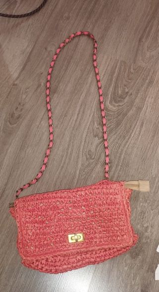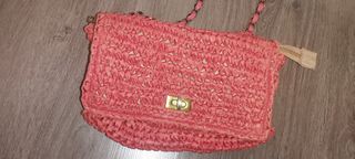 Bolso de fibra vegetal de la marca Misako, todo forrado, cierre de imán, con cinta para llevarlo colgado que también se puede quitar. Bolsillo interior. Sin uso.
