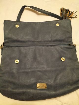 azul vaquero de polipiel, mucha capacidad ,bandolera.Totalmente nuevo.