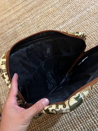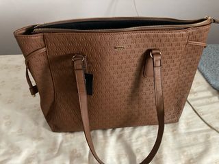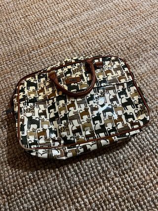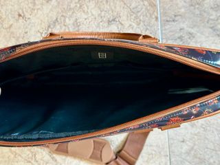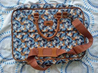 Elegante bolso de la marca MISAKO, ideal para llevar tu ordenador. Se encuentra en muy buen estado. - Diseño estampado con detalles en marrón. - Asa de mano y bandolera ajustable. - Cierre de cremallera.