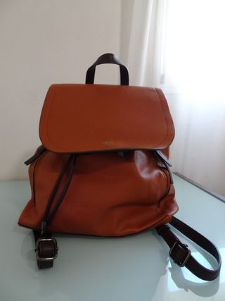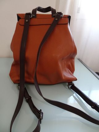 SÓLO HAGO ENVÍOS, NO ENTREGO EN PERSONA - Mochila de polipiel, en color marrón y camel, de Misako🤎🤎🤎 con bolsillos y asas regulables - Medidas: 28cm X 10cm X 30cm - Puesta una vez, como nueva